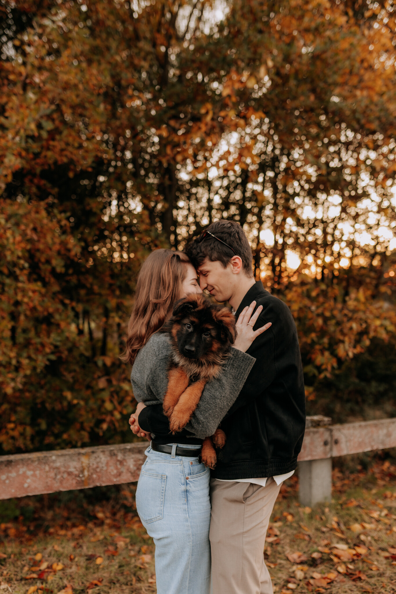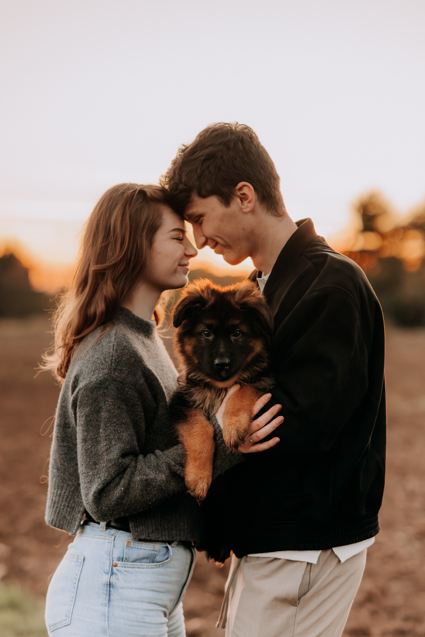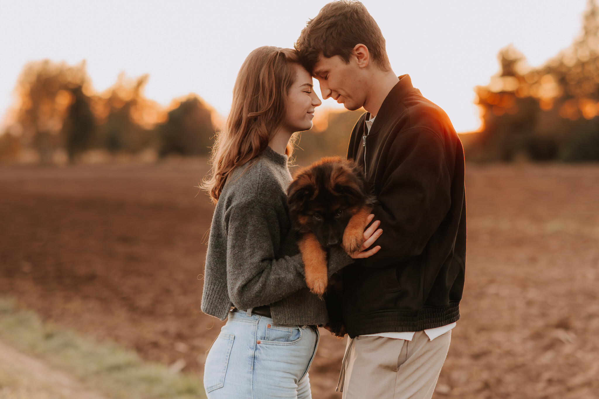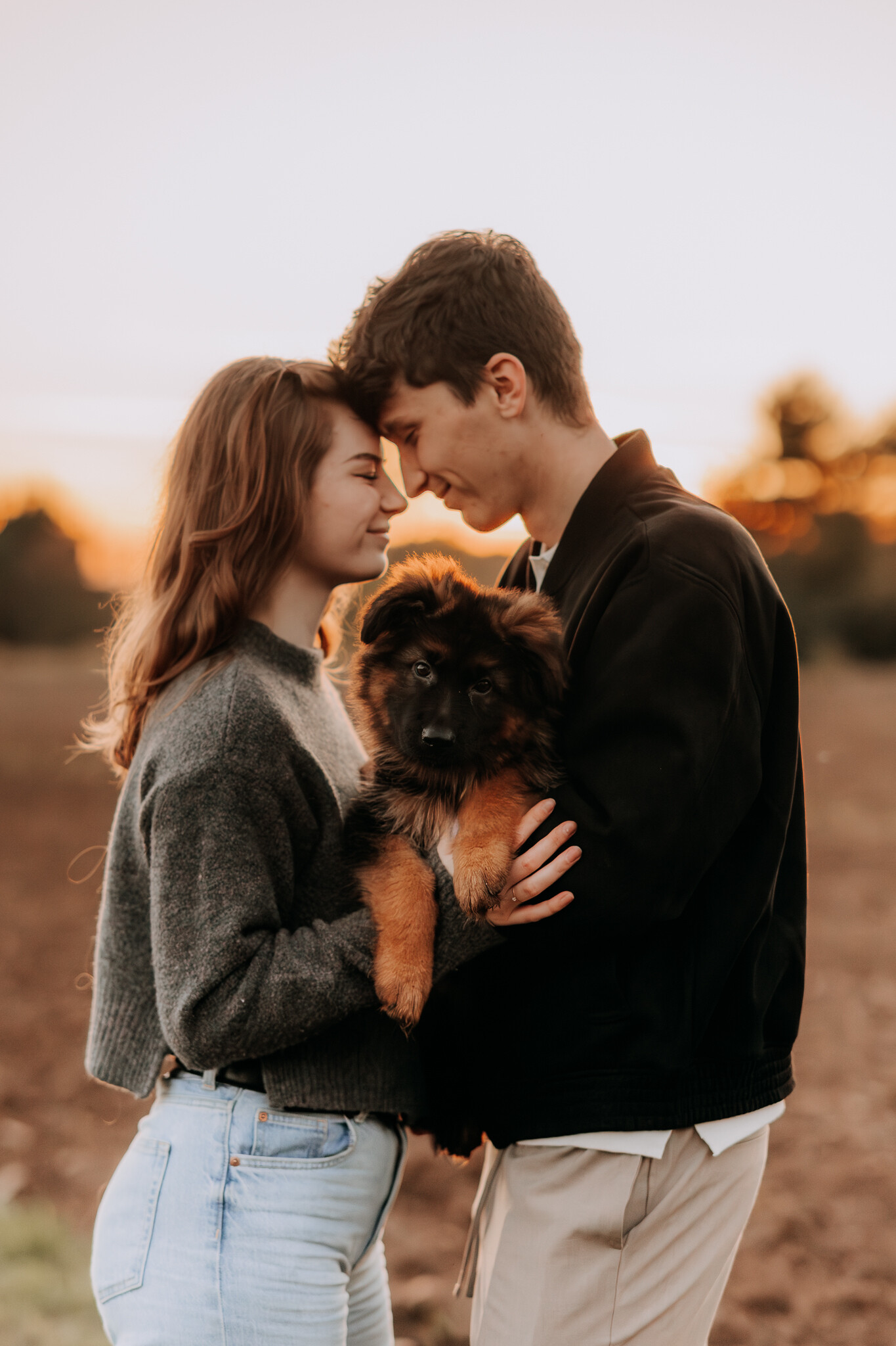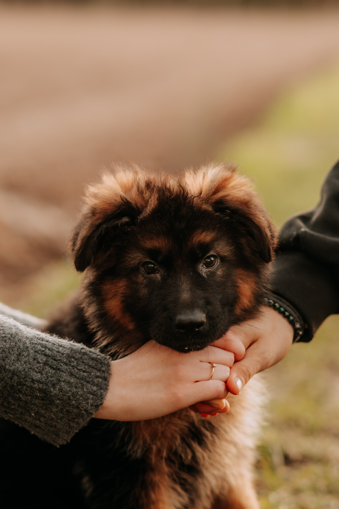 Ta historia zaczęła się dużo wcześniej niż klik migawki. Z Roksaną i Błażejem znamy się z Fundacji Funny Pets, więc od początku było wiadomo, że to nie będzie „zwykła” sesja narzeczeńska. Błażej rzucił kiedyś półżartem, półserio: zrobimy sesję, jak pojawi się szczeniak. I jak to w dobrych historiach bywa, słowo stało się ciałem. A raczej czterema łapami 🐾