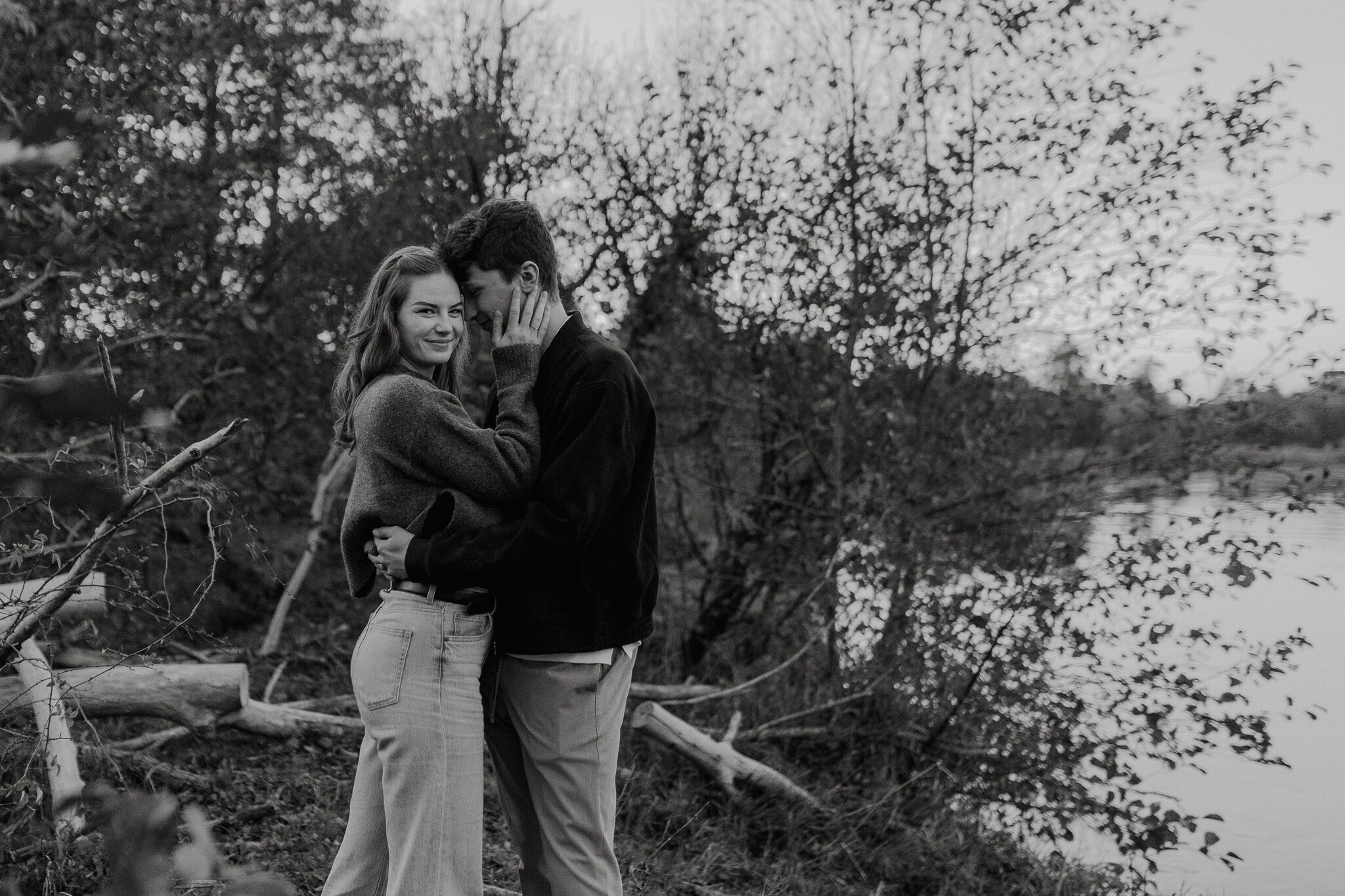 Na koniec była rzeka. Cicha, obecna, odbijająca resztki światła. Kilka kadrów z Wartą i Widawką w tle zamknęło sesję dokładnie tak, jak powinna się zamknąć. Bez fajerwerków. Z oddechem. Z przestrzenią między gestami.